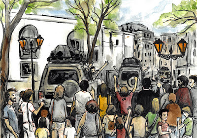 Ilustração original assinada, em formato A4 (210 x 297 mm), tinta da china e aguarela sobre papel, estudo para o livro II Raide Macau - Lisboa: Da China a Portugal pela Rota Proíbida (https://atentaculo.weebly.com/raide.html)